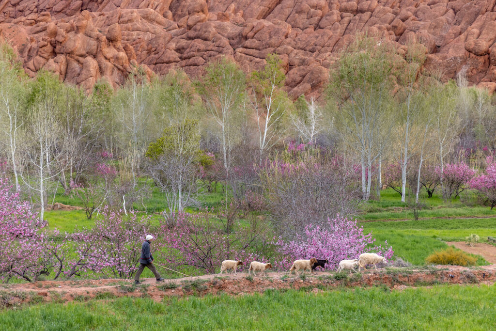 Today we will pass by the international film shooting mecca Ouarzazate and turn East on the “Route of 1,000 Castles,” through the M’goun rose cultivation area until Boumalne. There, an excursion for afternoon shooting in the Dades, considered the Kingdom’s most picturesque valley, with its old adobe forts and odd rock formations above varied orchards.